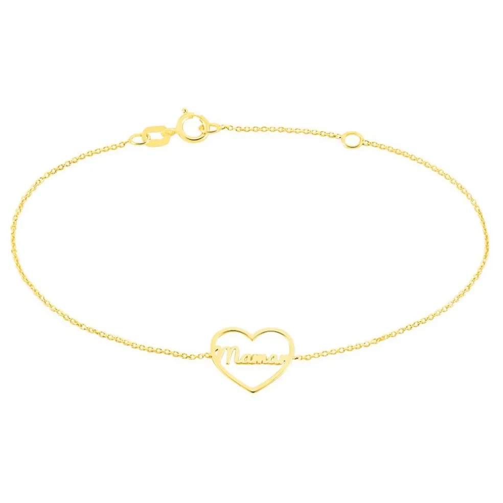 Bracelet Or Jaune 375/1000 C艙ur Ajoure Message Maman Maille Jaseron 16+2cm
