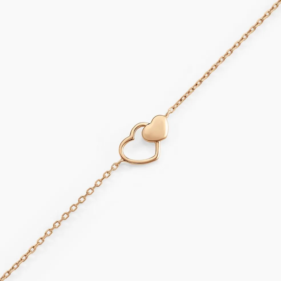 Bracelet Plaqué Or Jaune Maille Coeurs Doubles Maille Forcat 18cm