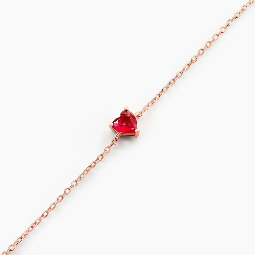 Bracelet Argent Rose 925/1000 C艙ur Serti Griffes Oxyde De Zirconium Rouge Maille Forcat 18cm