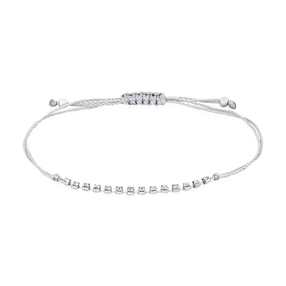 Bracelet Argent 925/1000 Oxyde Cordon Ajustable Gris 16.5+3cm