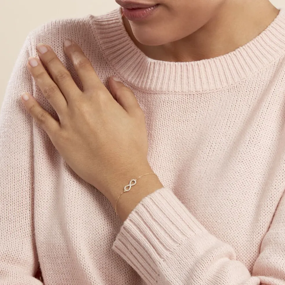 Bracelet Or Jaune 375/1000 Forme Infini Et Oxydes De Zirconium 18cm