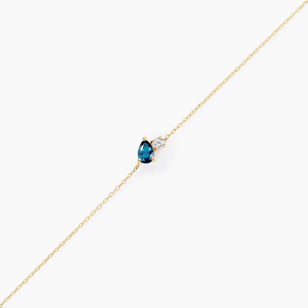 Bracelet Or Jaune 375/1000 Gouttes Topaze Bleu London Et Oxyde De Zirconium Serti Griffes Maille Forcat 16+2cm
