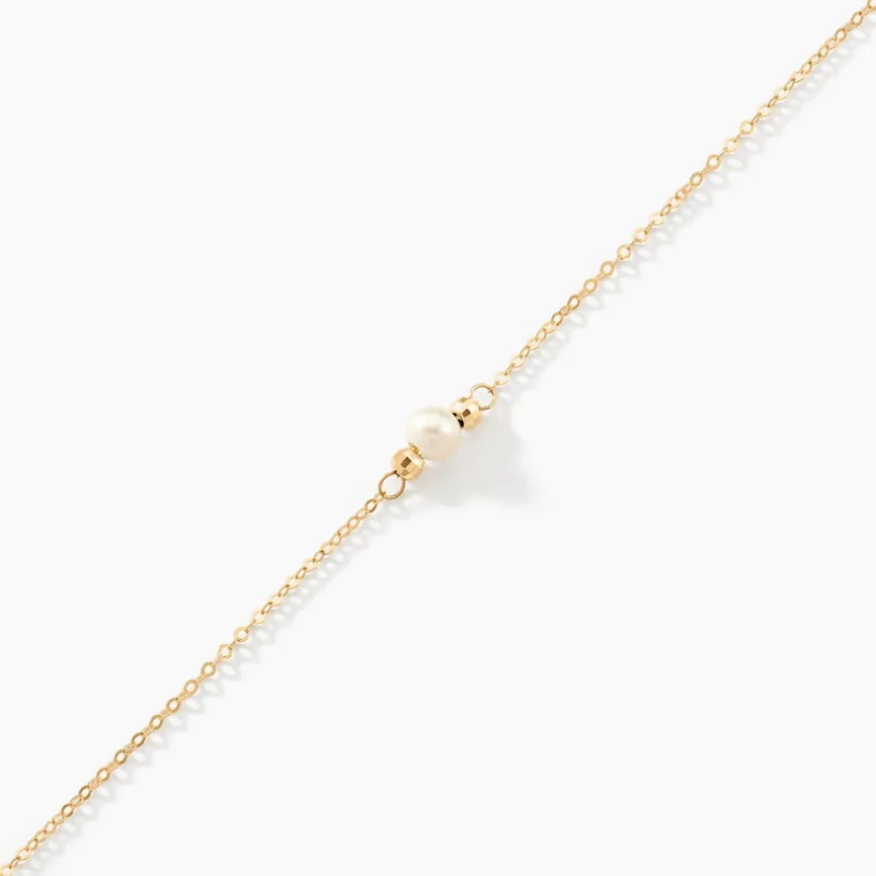Bracelet Or Jaune 375/1000 Perle De Culture 4.5/5mm Et Boules Or 18cm