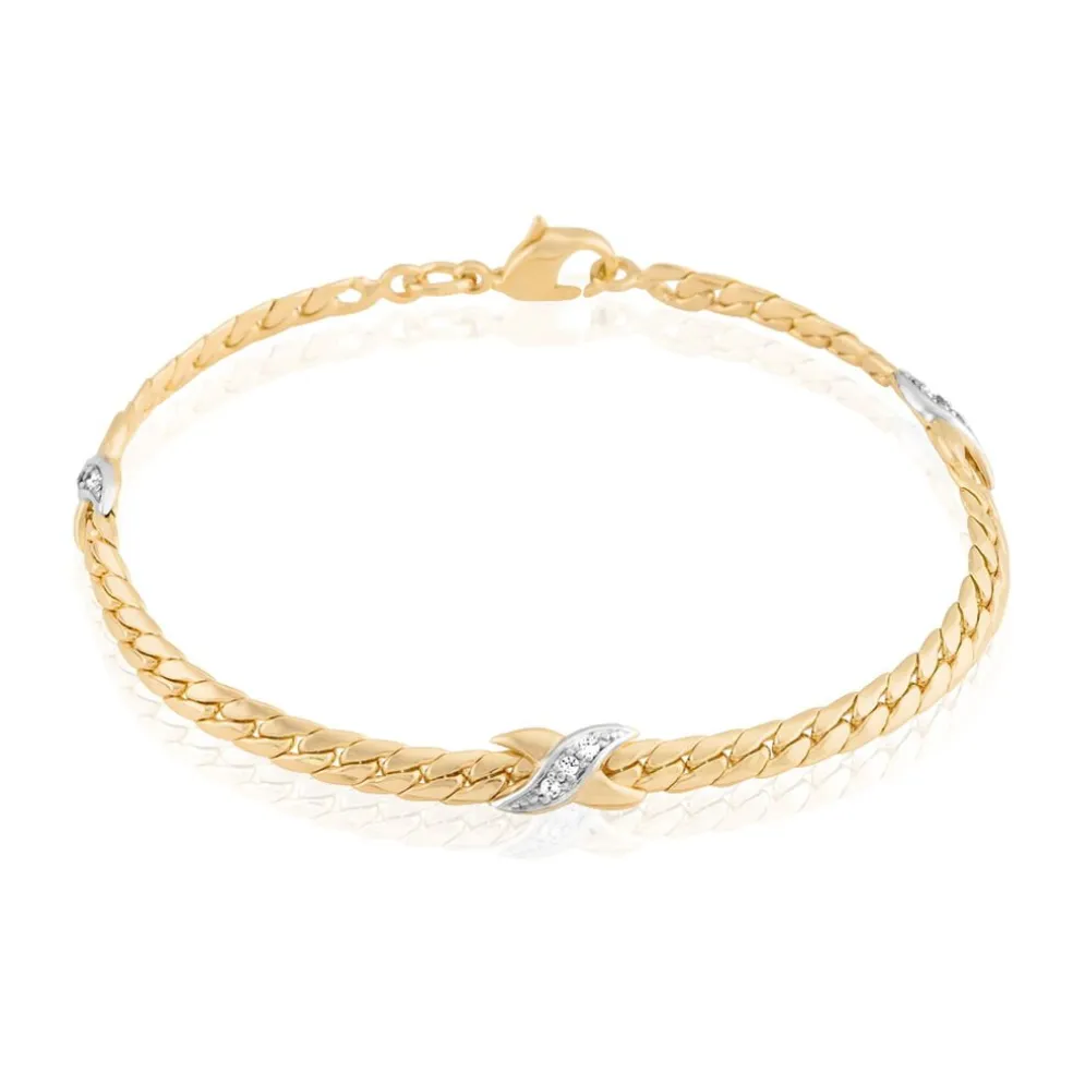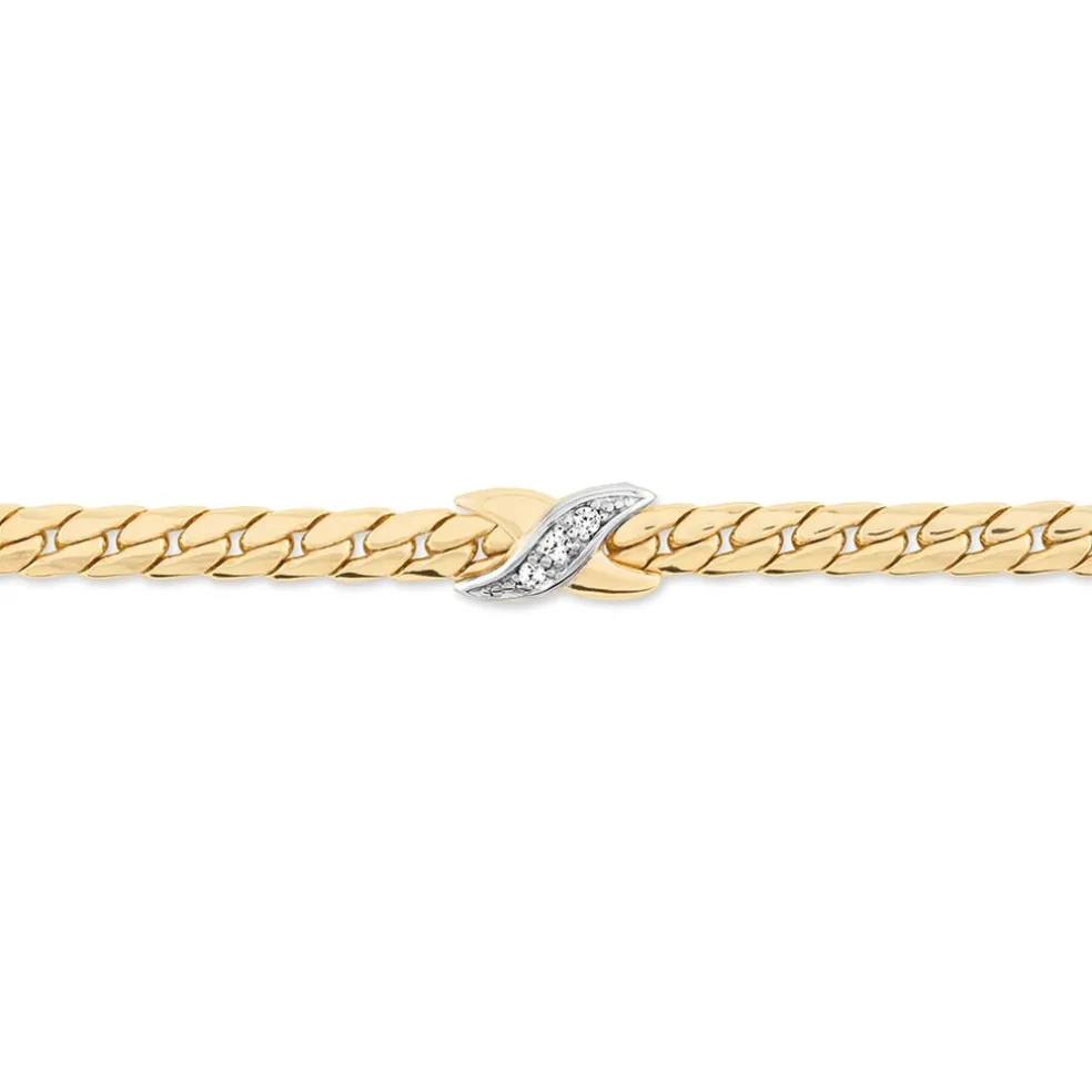 Bracelet Plaqué Or Jaune Oxyde De Zirconium Maille Anglaise Bicolore 3.9mm 18.5cm