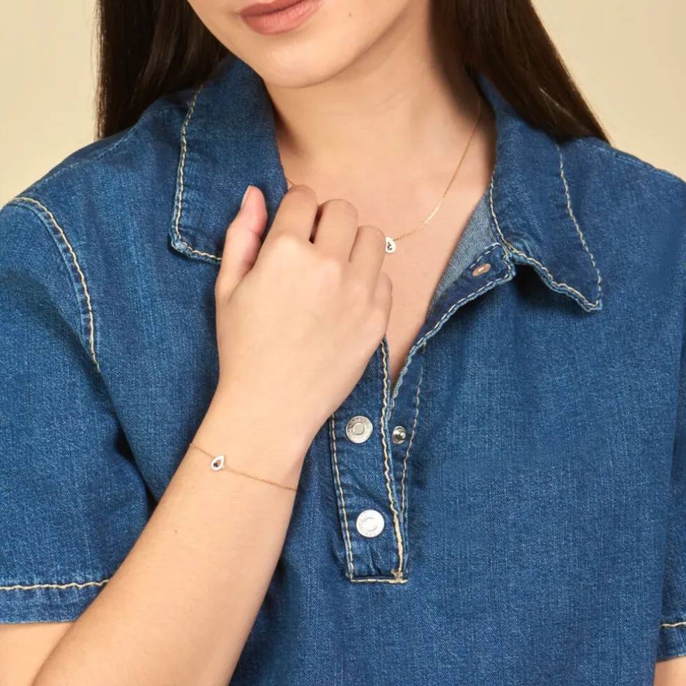 Bracelet Or Bicolore 375/1000 Goutte Ajoure Avec 1 Saphir Rond 0.075cts Serti Griffes Maille Forcat Ronde 16+2cm