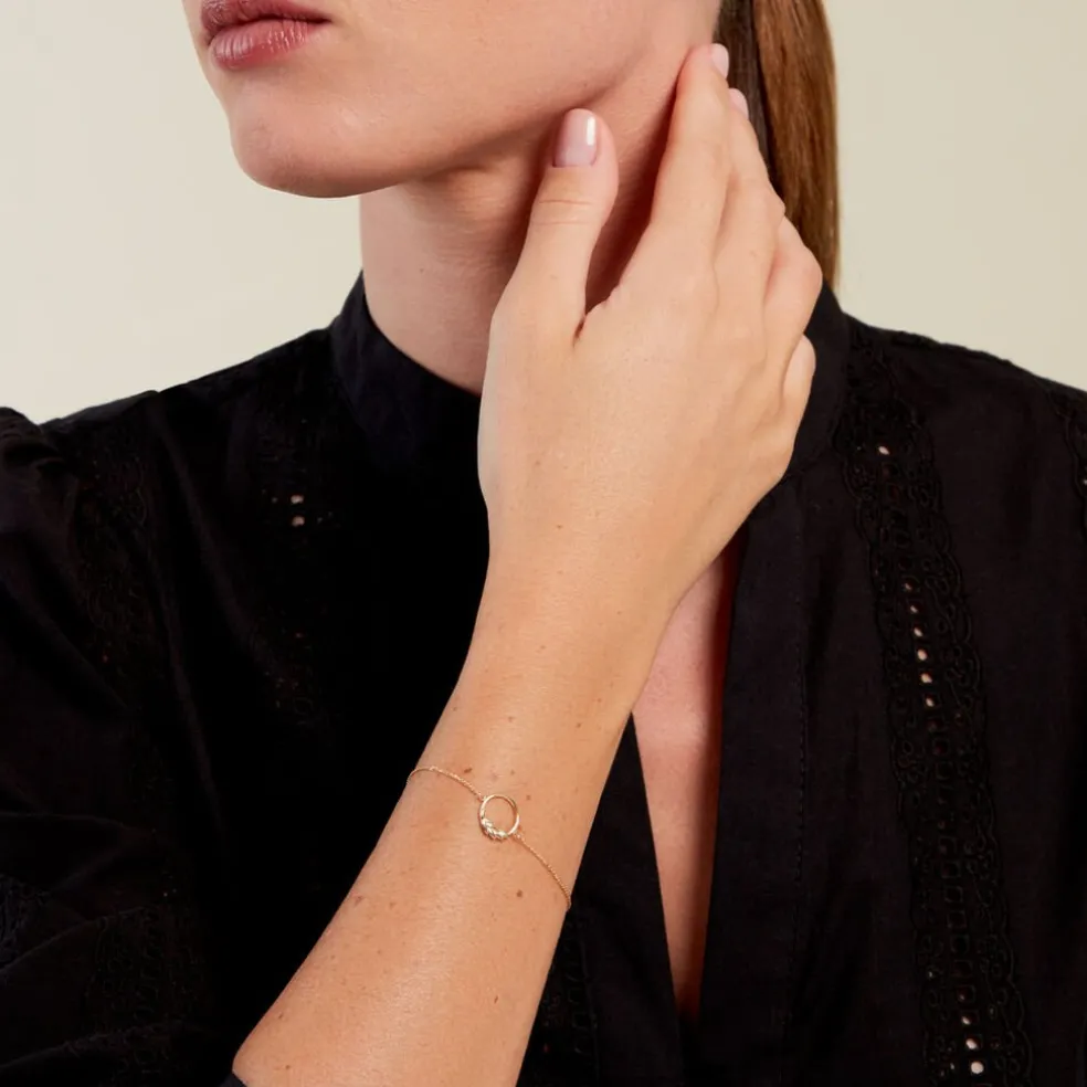 Bracelet Or Jaune 375/1000 Cercle Feuille De Laurier Maille Jaseron 16+2cm