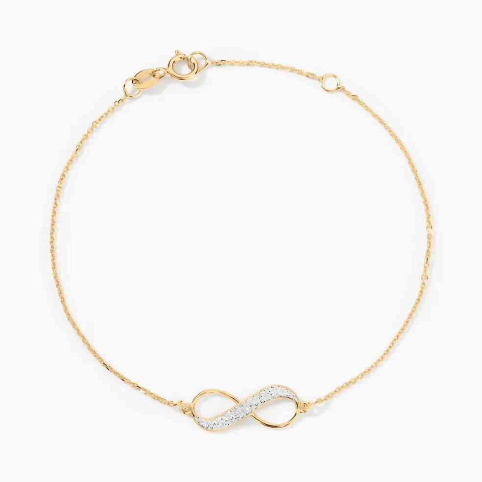 Bracelet Or Jaune 375/1000 Infini Glitter Argente Maille Jaseron 16+2cm