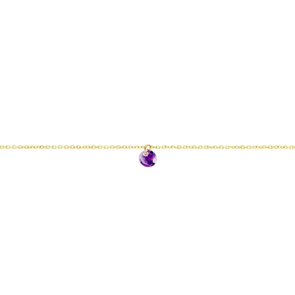 Bracelet Or Jaune 375/1000 Améthyste Ronde Percée 0.25 Cts Maille Forçat 18cm