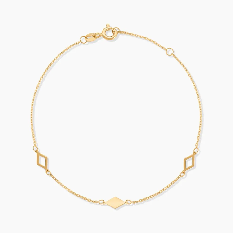Bracelet Or Jaune 375/1000 Trilogie Losanges Maille Forcat 16+2Cm
