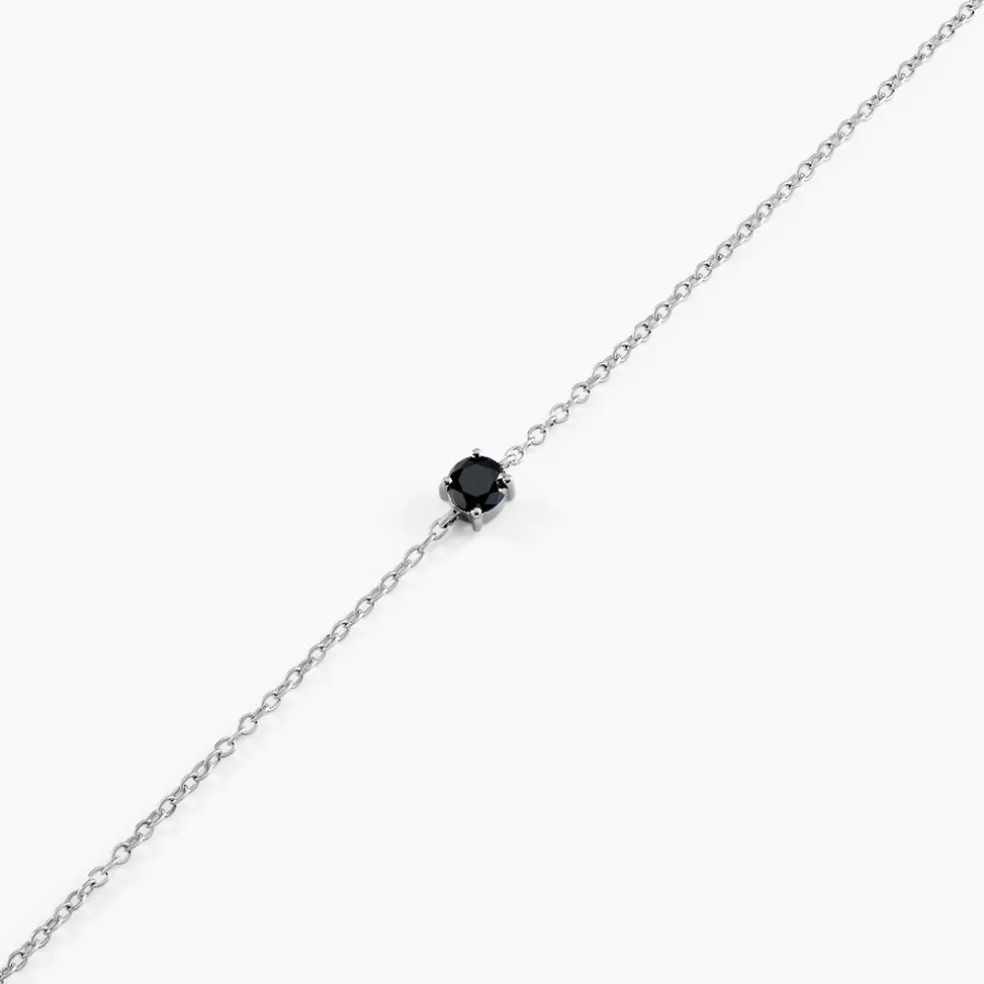 Bracelet Solitaire Argent 925/1000 Oxyde De Zirconium Noir Serti 4 Griffes 4mm Maille Forçat 19cm