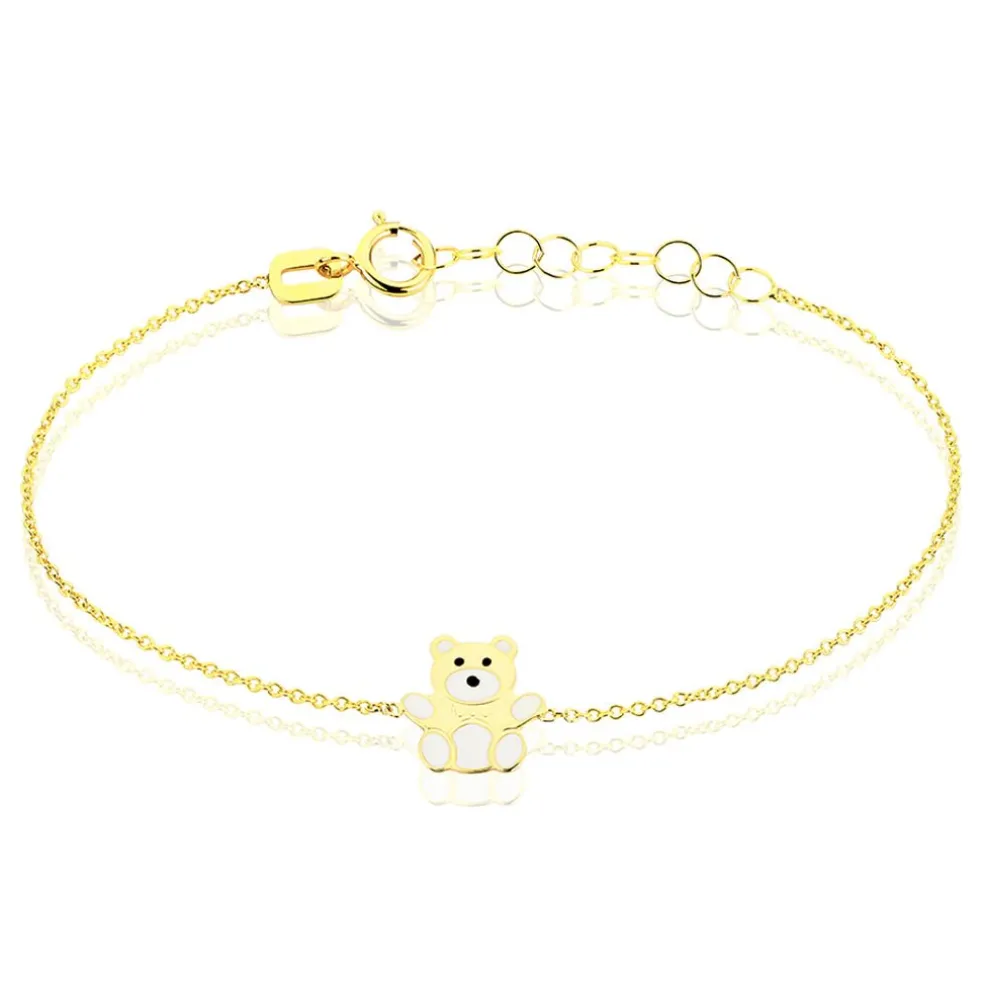 Bracelet Or Jaune 375/1000 Ourson Blanc 14cm