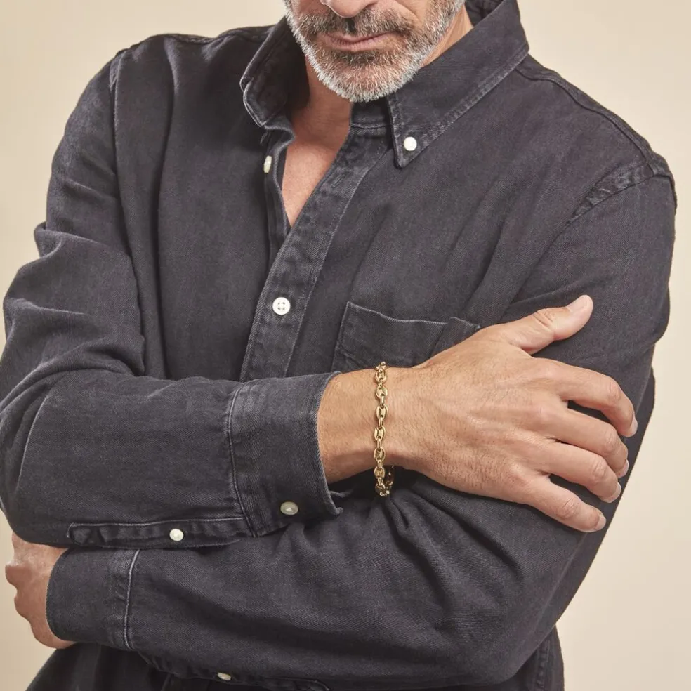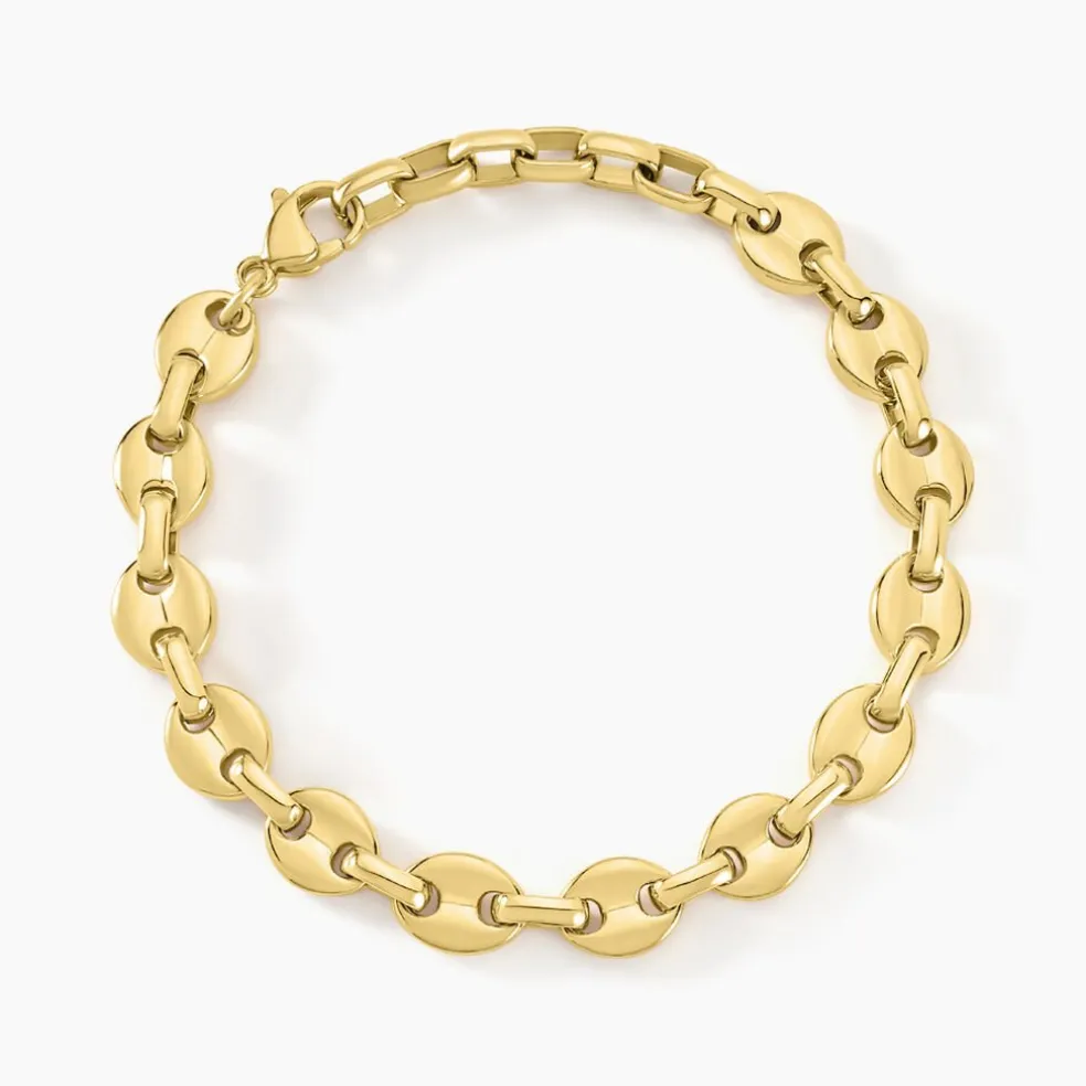 Bracelet Acier Inoxydable Jaune Maille Grain De Cafe Largeur 8mm 18+3cm