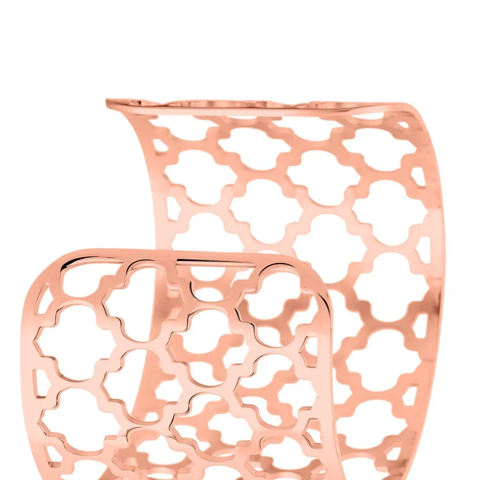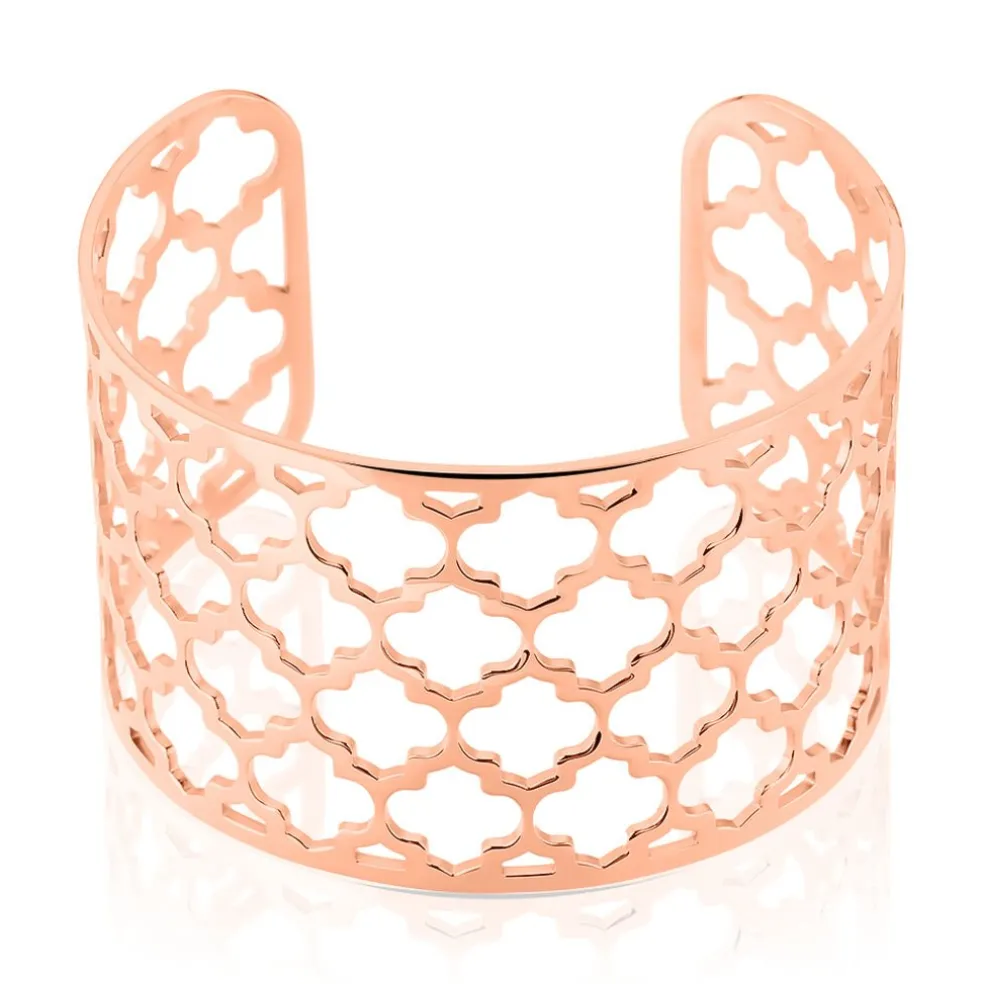 Bracelet Acier Rose Manchette Motifs Trefles Ajoures Ajustable