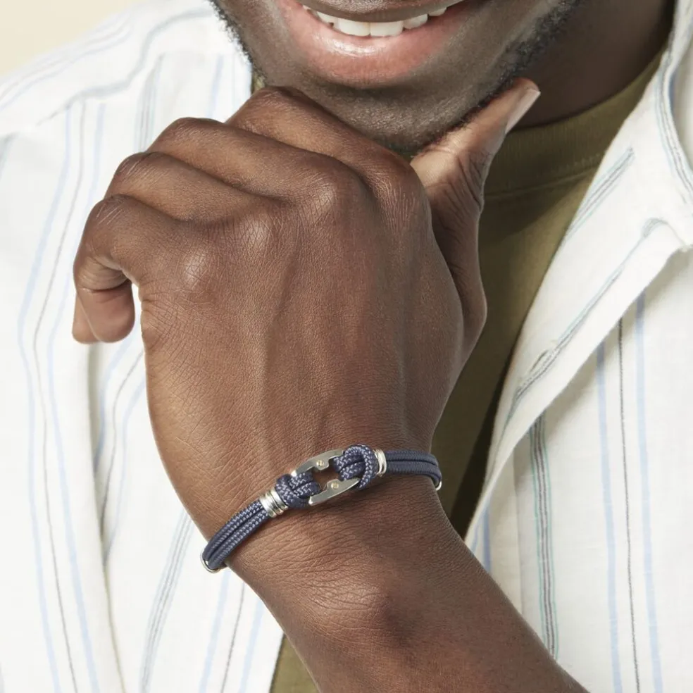 Bracelet Acier Vis Or Cordons Marine 21cm