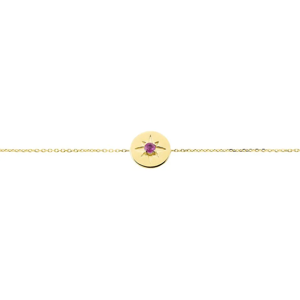 Bracelet Or Jaune 375/1000 Rubis 0.1cts Serti 4 Griffes Maille Forçat 18cm