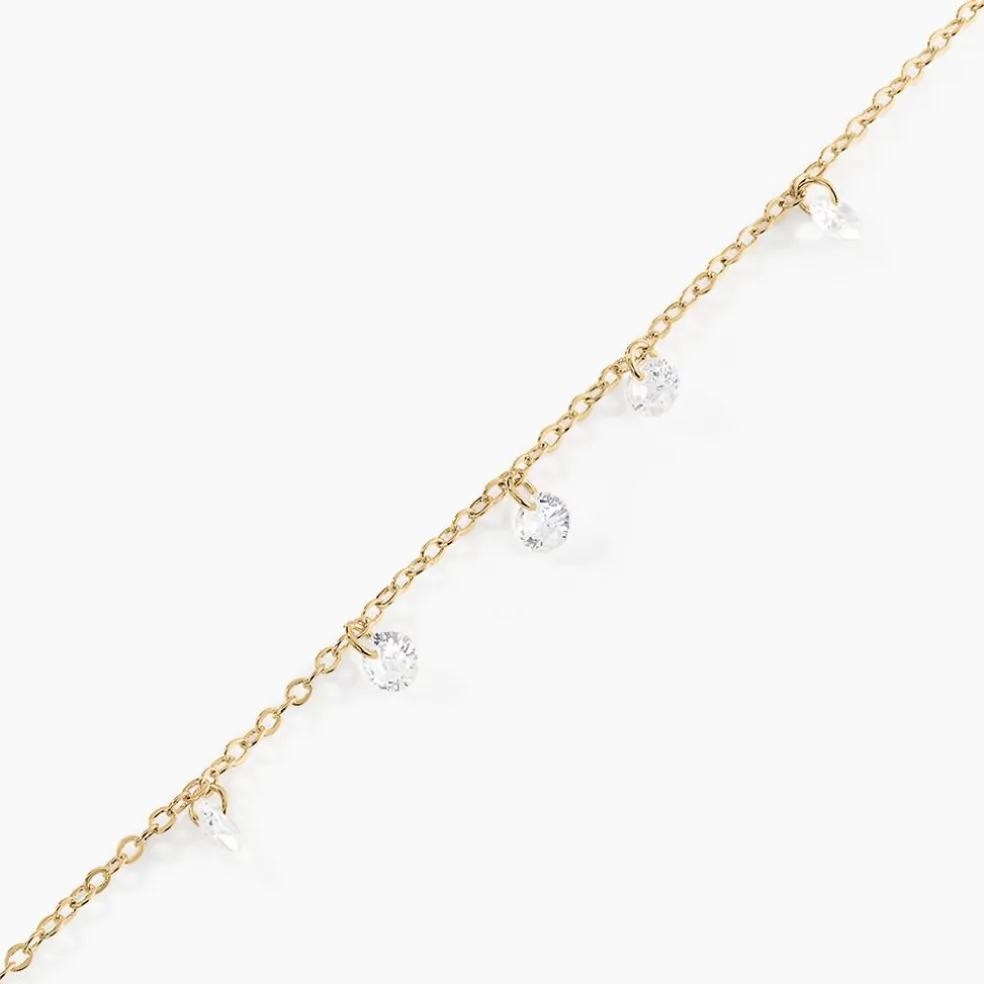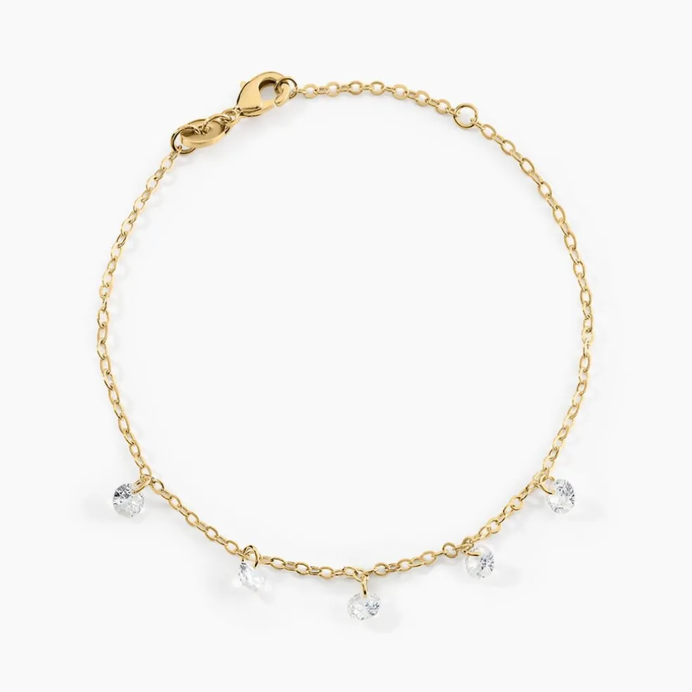 Bracelet Plaqué Or Jaune Pampilles Oxydes De Zirconium Chaine Forcat 18cm