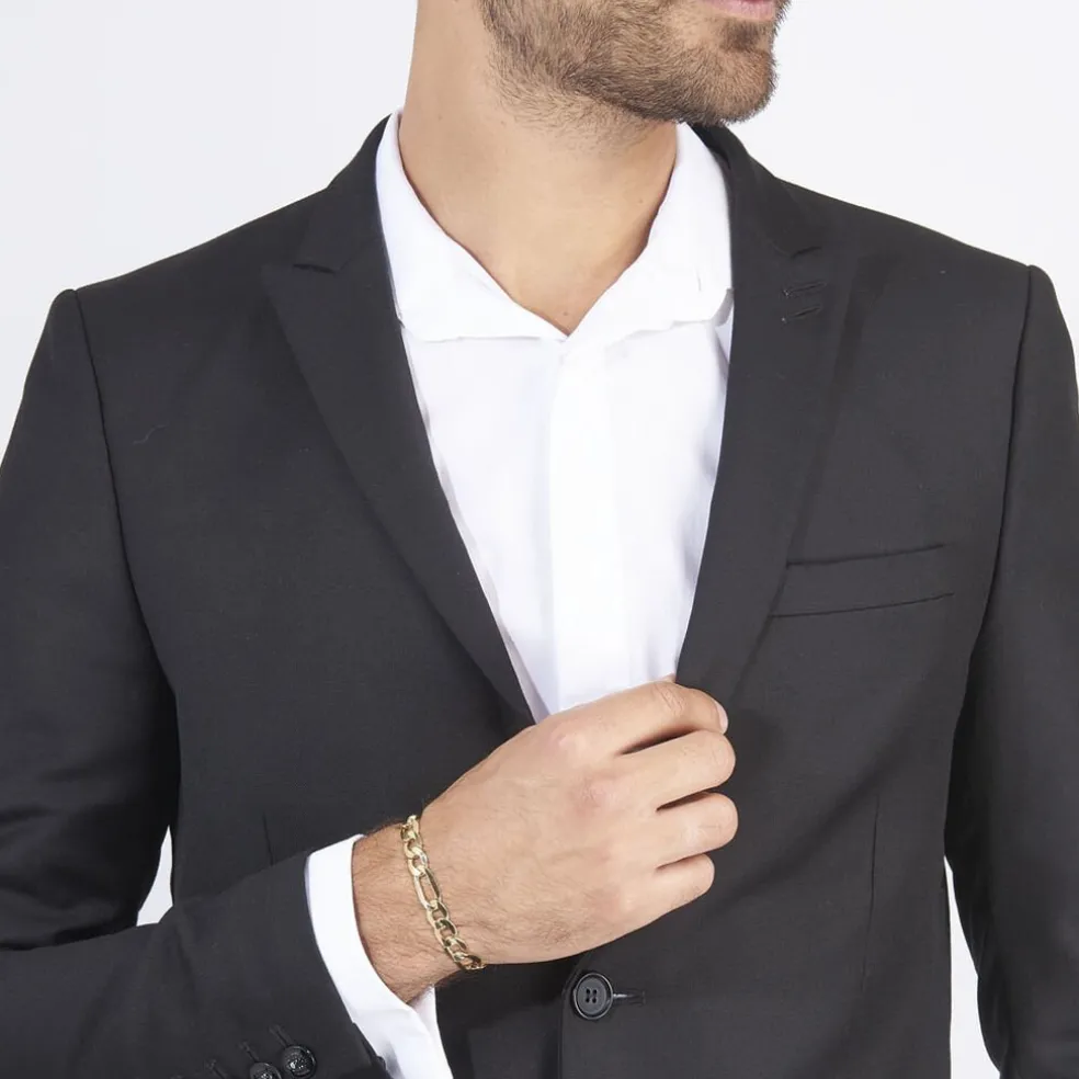 Bracelet Or Jaune 375/1000 Maille Alternée 1/3 Largeur 9.6mm 21cm