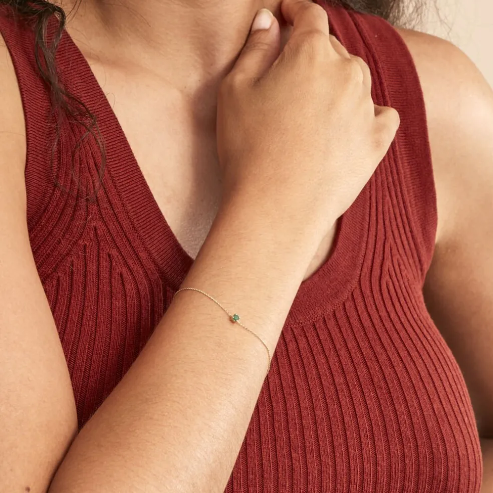 Bracelet Solitaire Or Jaune 375/1000 Emeraude Serti Griffes 0.1ct Maille Forçat 18cm