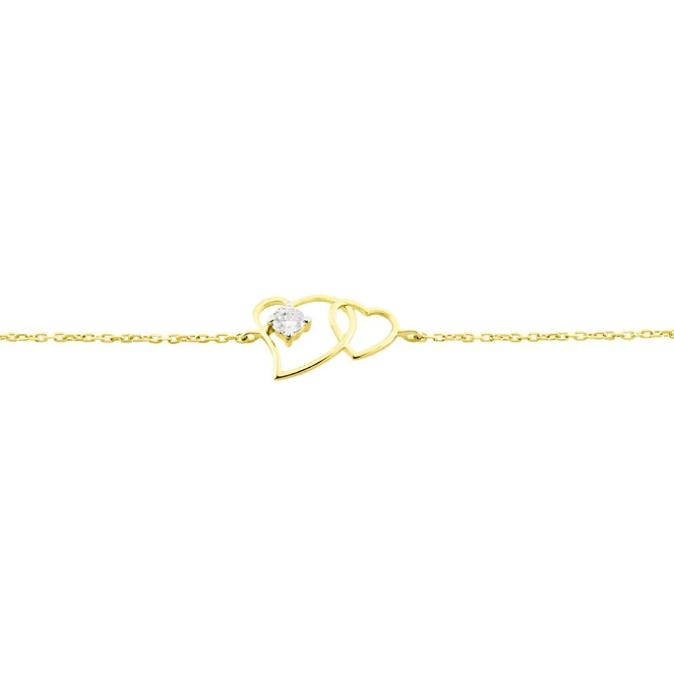 Bracelet Or Jaune 375/1000 Forme Double C艙ur Et Oxyde Central 18.5 Cm