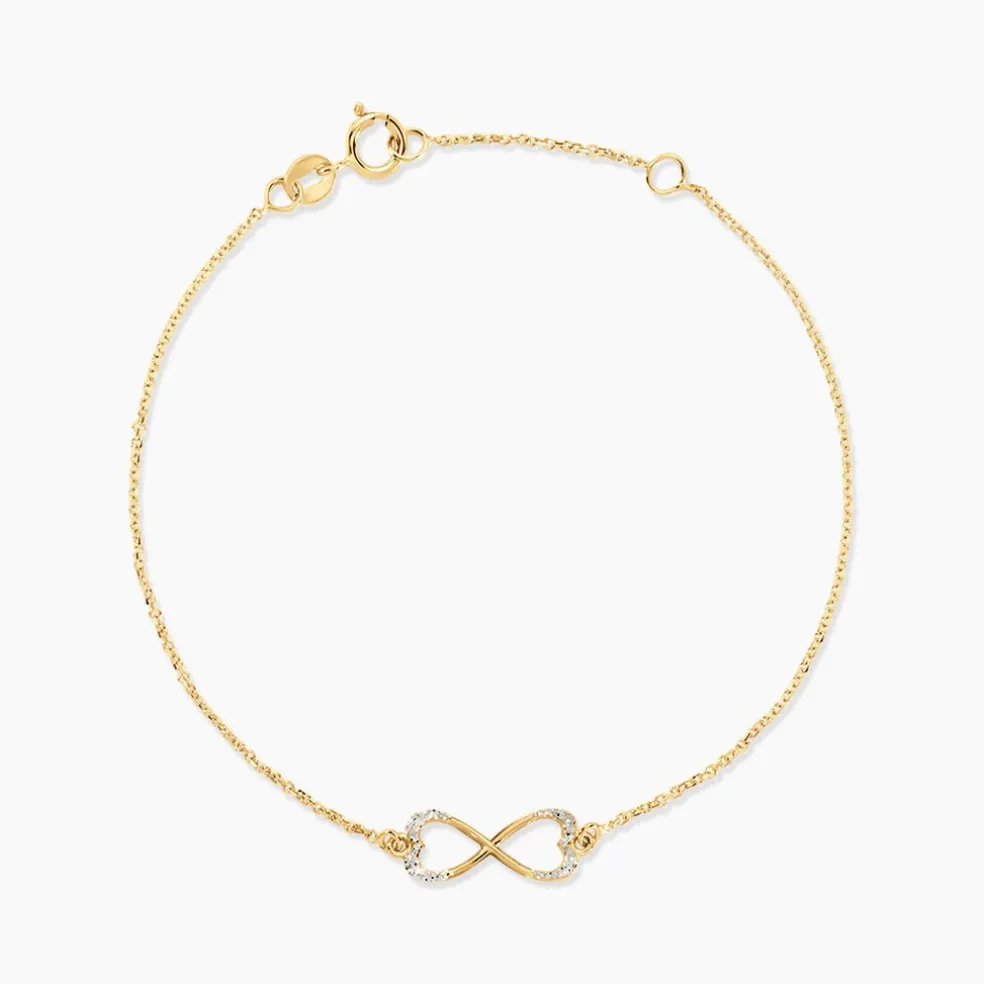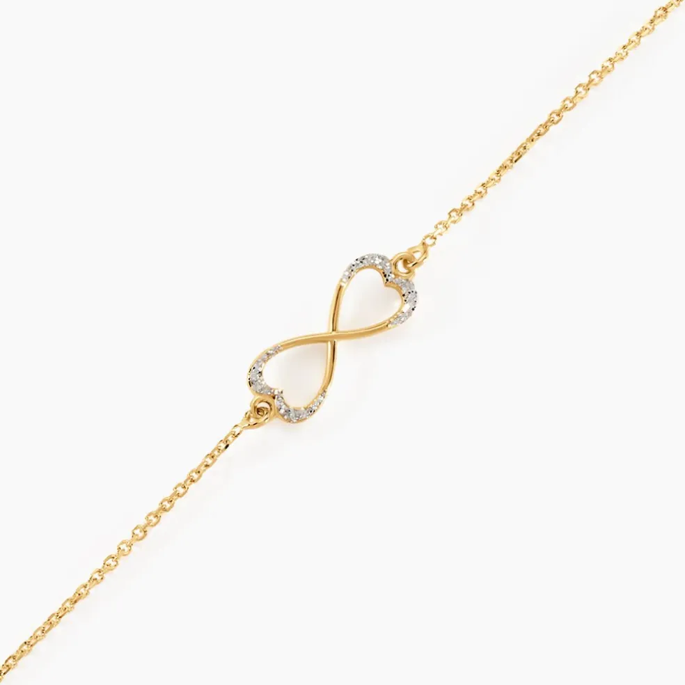Bracelet Or Jaune 375/1000 Infini Glitter Argente Maille Jaseron 16+2cm