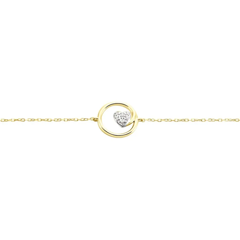 Bracelet Or Jaune 375/1000 Forme Cercle Intérieure C艙ur Pavage Diamants Blancs Maille Forçat 16+2cm