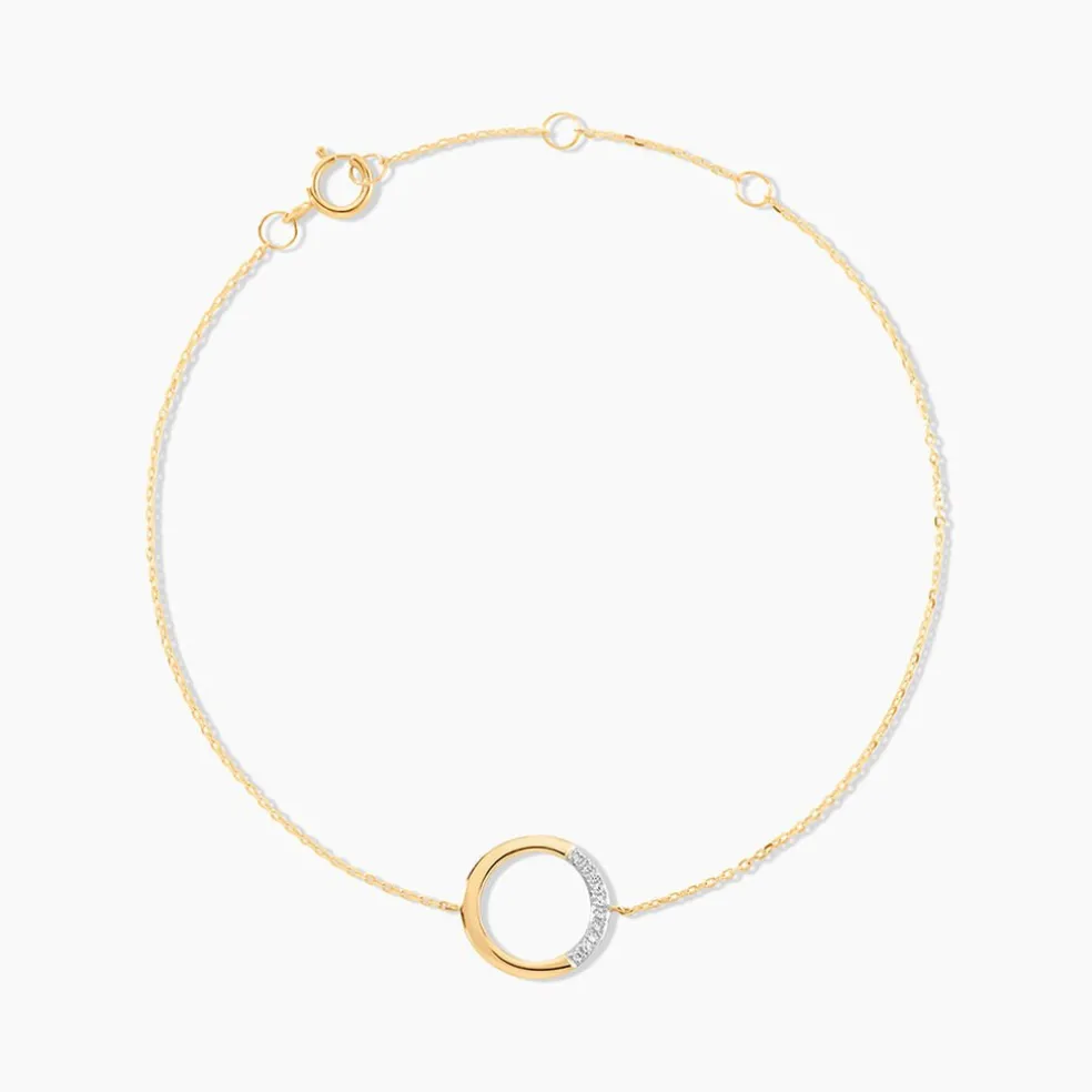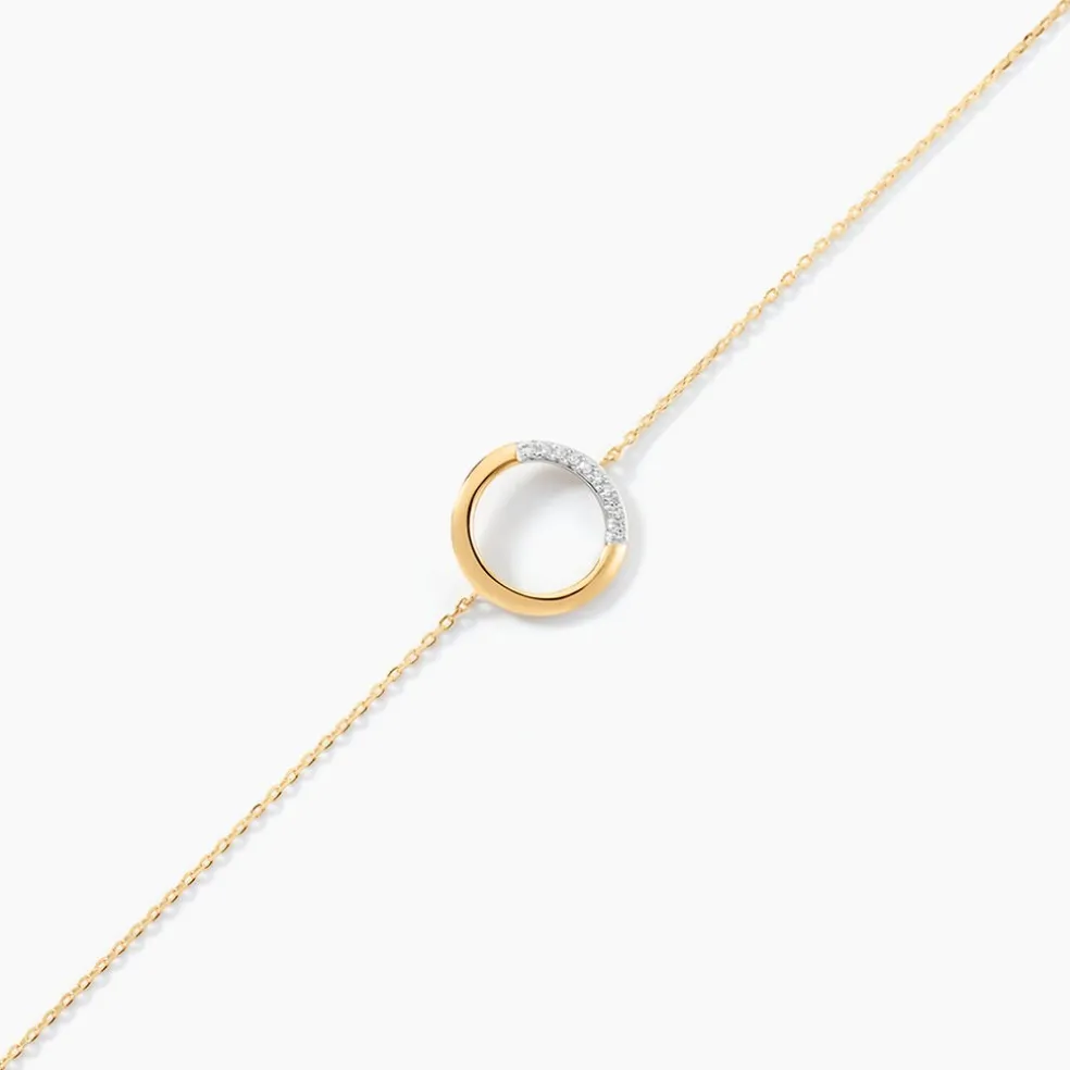 Bracelet Or Jaune 375/1000 Forme Cercle Pavage Diamants 18.5cm