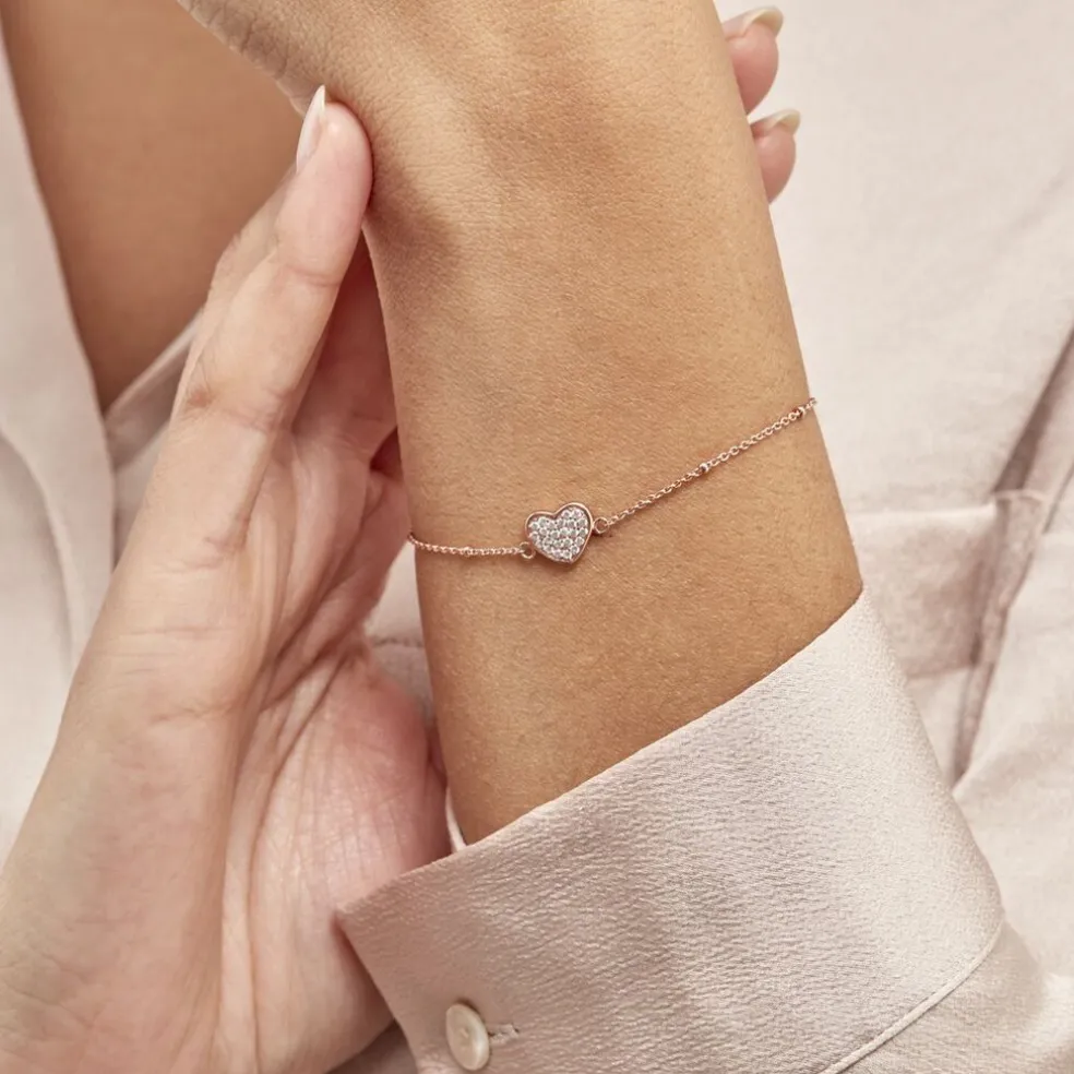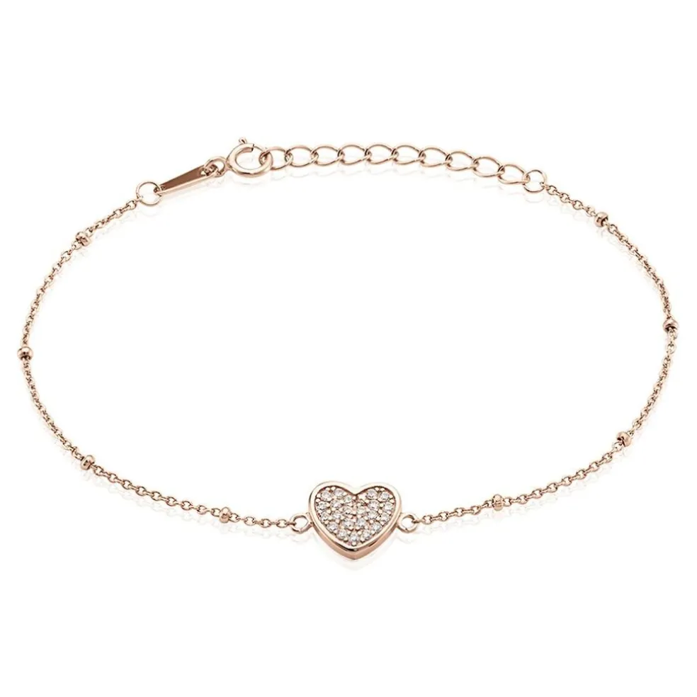 Bracelet Argent Rose 925/1000 C艙ur Pave Oxydes De Zriconium Maille Forcat 19cm