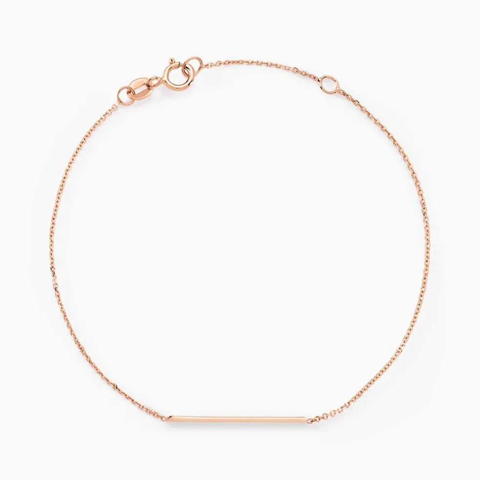Bracelet Or Rose 375/1000 Barrette Maille Jaseron 18cm