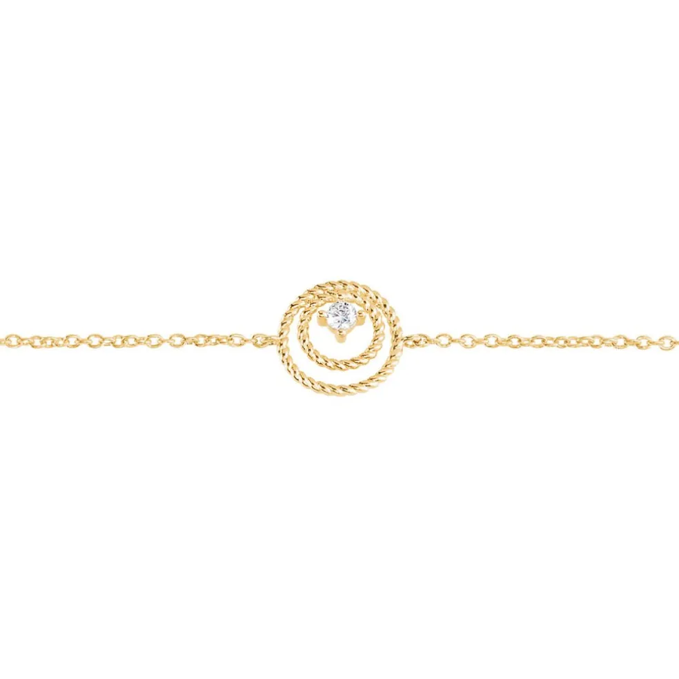 Bracelet Plaque Or Jaune Double Cercles Effet Tresse Oxydes De Zirconium Centrale 18cm