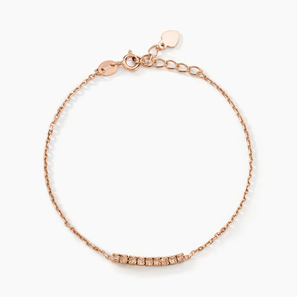 Bracelet Argent Rose 925/1000 Oxydes De Zirconium Champagne Maille Tennis Et Forçat 19cm