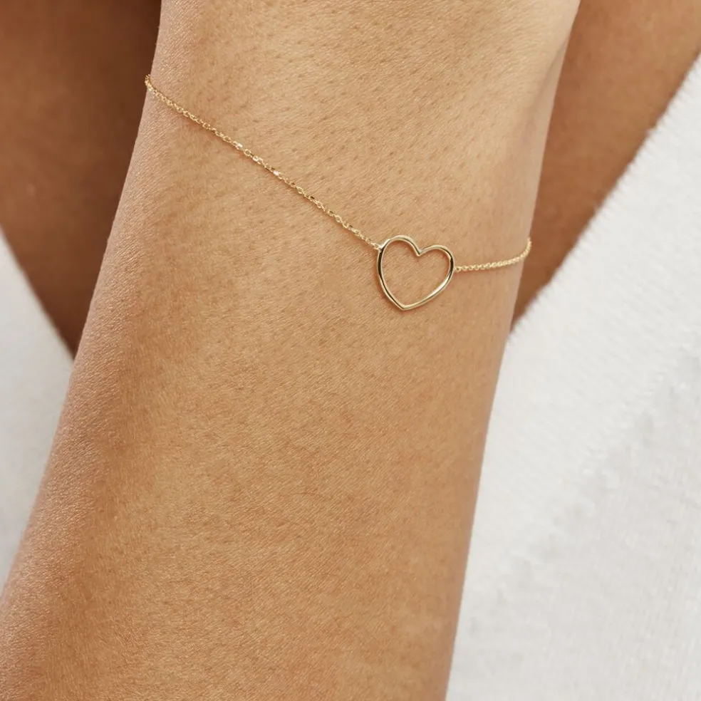 Bracelet Or Jaune 375/1000 Coeur Ajoure Maille Jaseron 18cm