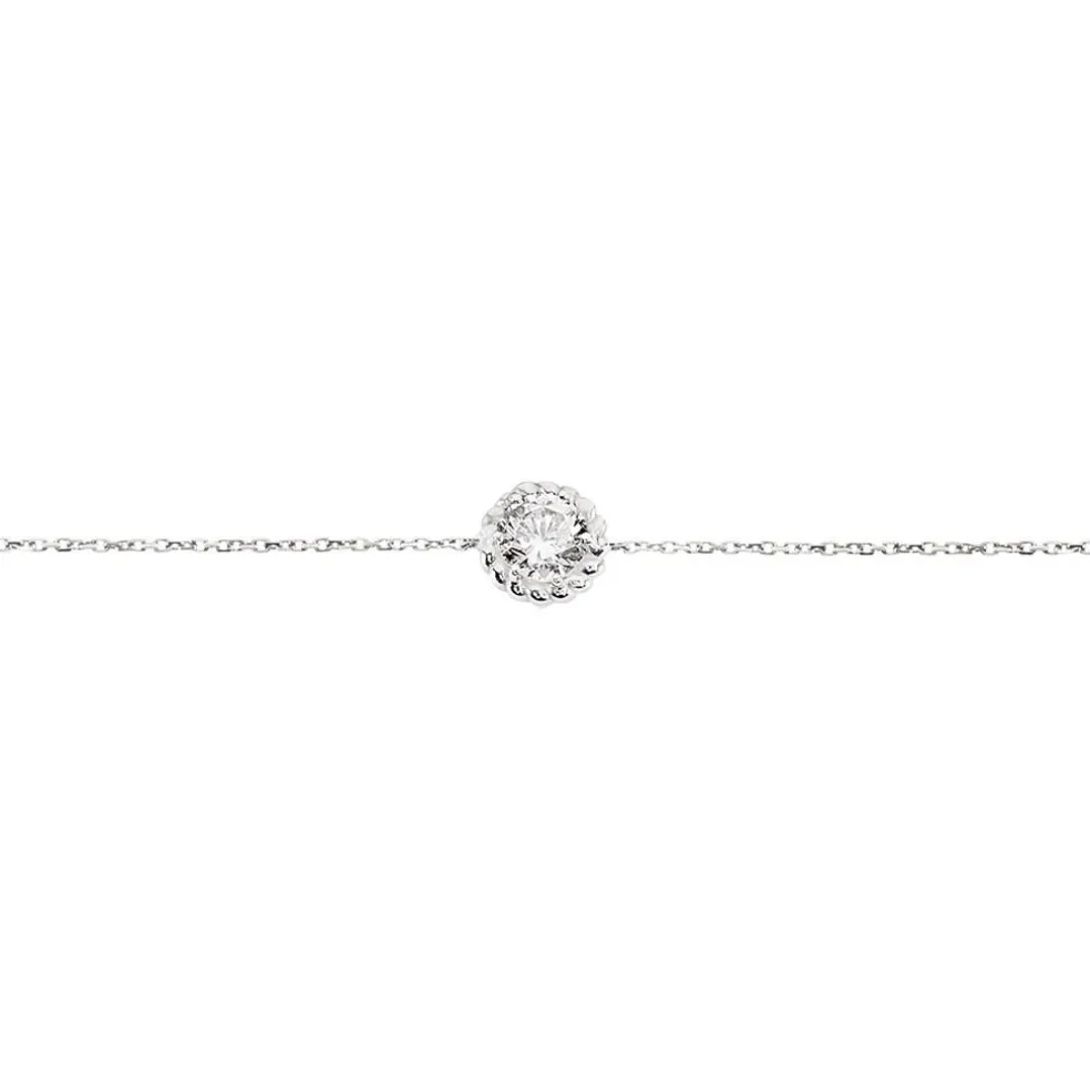 Bracelet Or Blanc 375/1000 Oxyde De Zirconium Sertis Clos Entourage Torsade 17cm