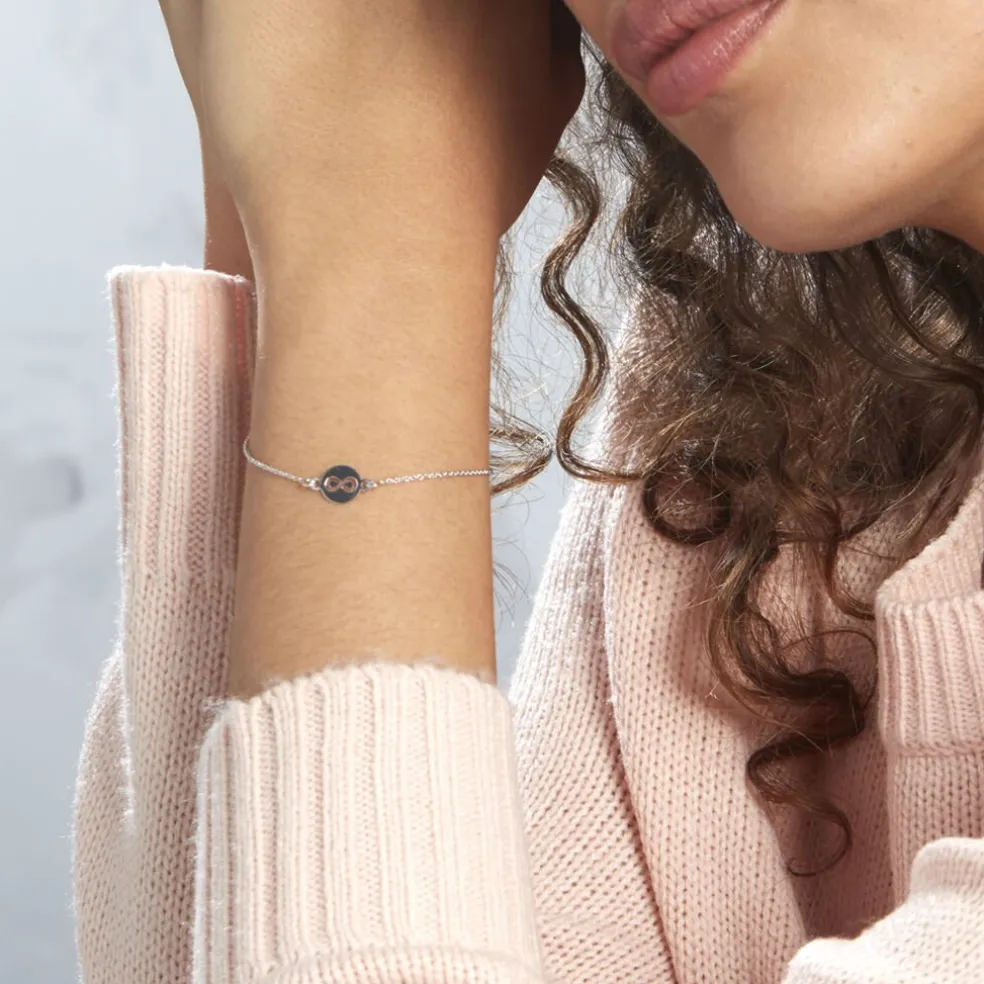 Bracelet Argent Blanc 925/1000 Pastille Motif Infini Ajoure Maille Forcat 18cm