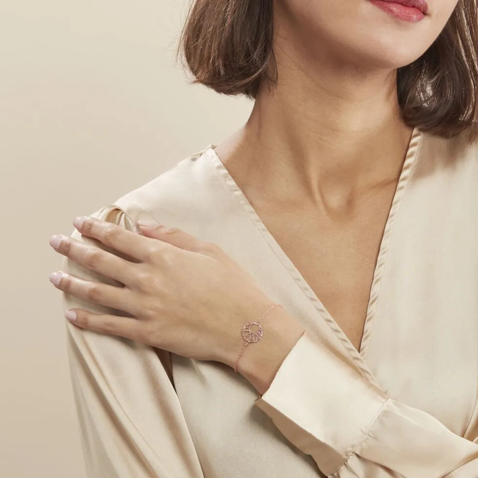 Bracelet Argent Rose 925/1000 Rosace Effet Diamante Maille Forcat 18cm