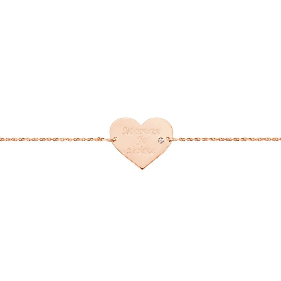 Bracelet Or Rose 375/1000 C艙ur Plein Message Maman Je T’aime Oxyde De Zirconium 18cm