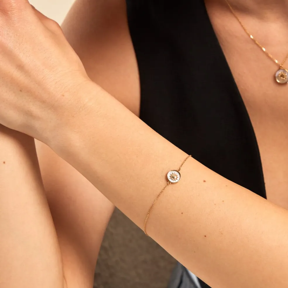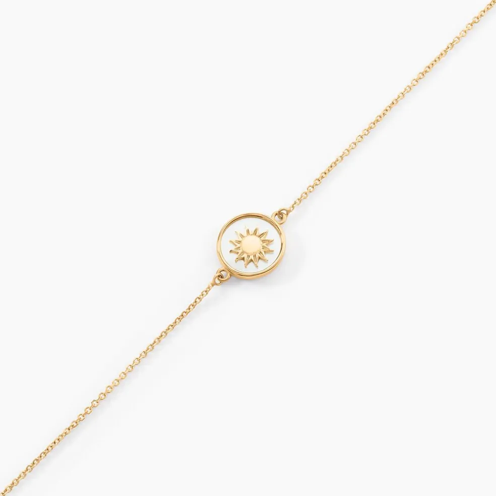 Bracelet Or Jaune 375/1000 Soleil Nacre Blanche Maille Jaseron 16+2cm