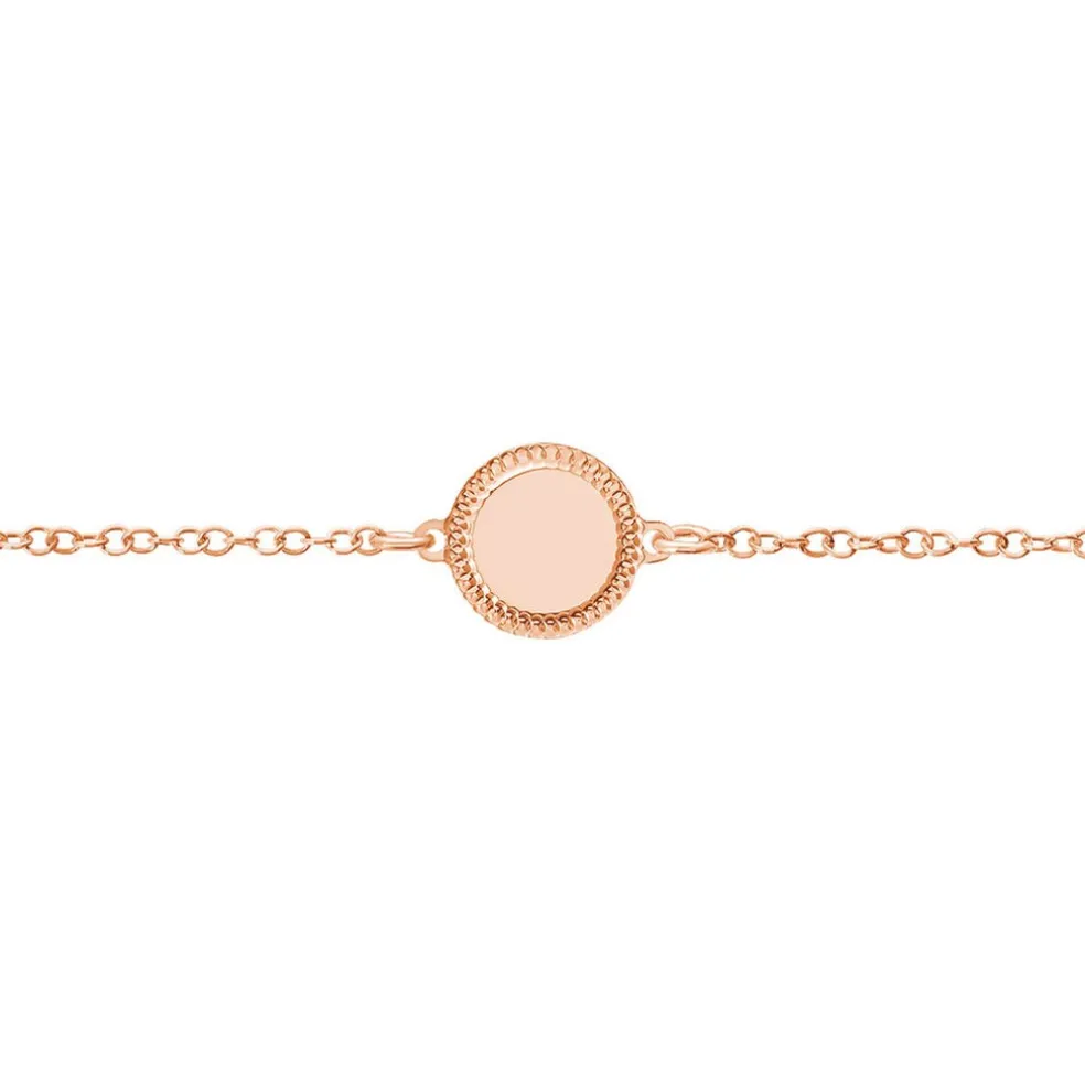 Bracelet Argent Rose 925/1000 Pastille Lisse Et Diamantee Maille Forcat 18cm