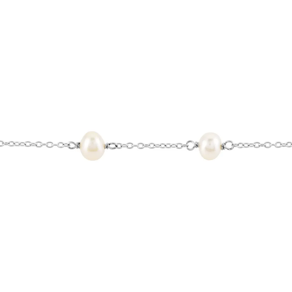 Bracelet Argent Blanc 925/1000 Perles De Culture 4-4.5 Mm Maille Forçat 18.5cm