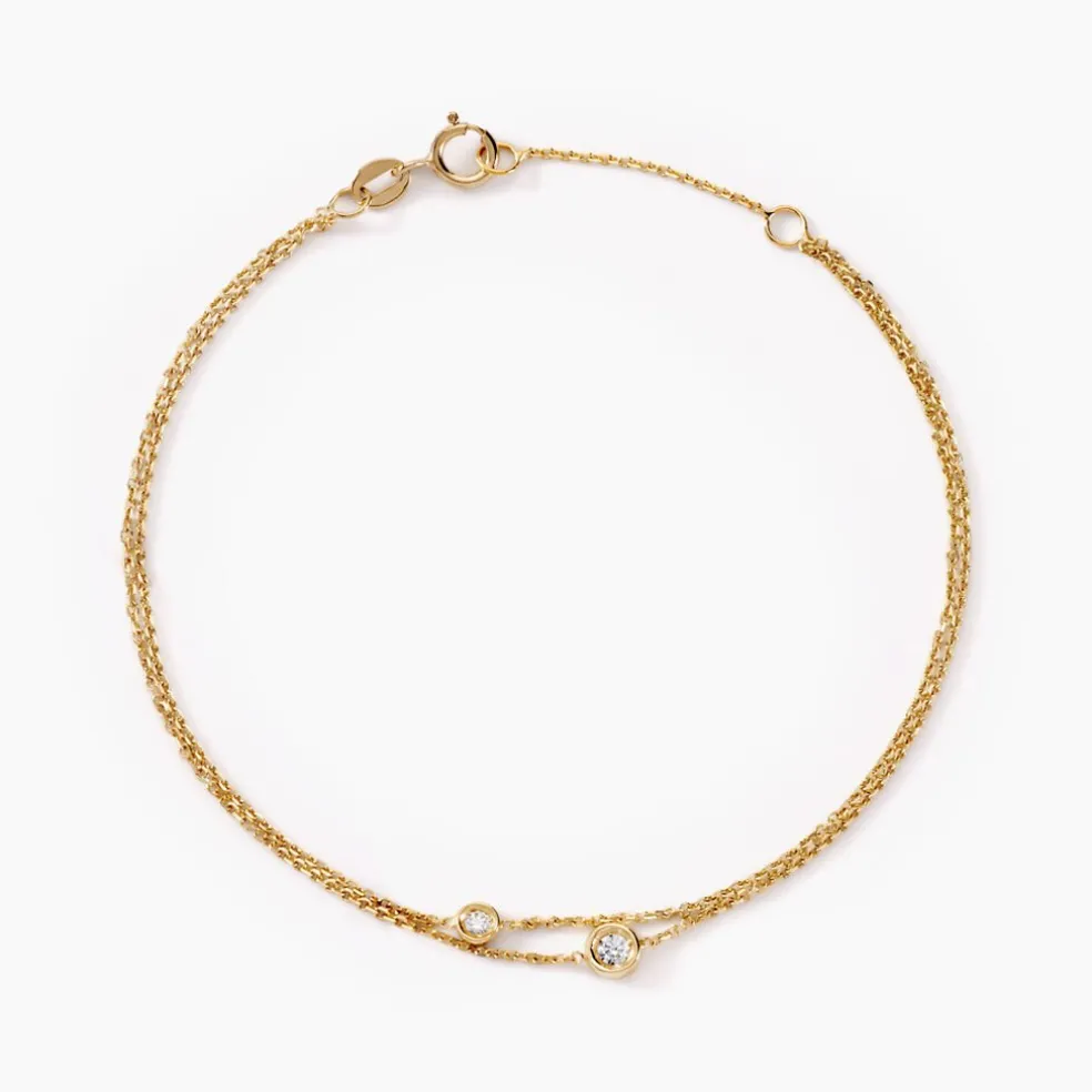 Bracelet Or Jaune 375/1000 Double Chaine Oxydes De Zirconium Clos 18cm