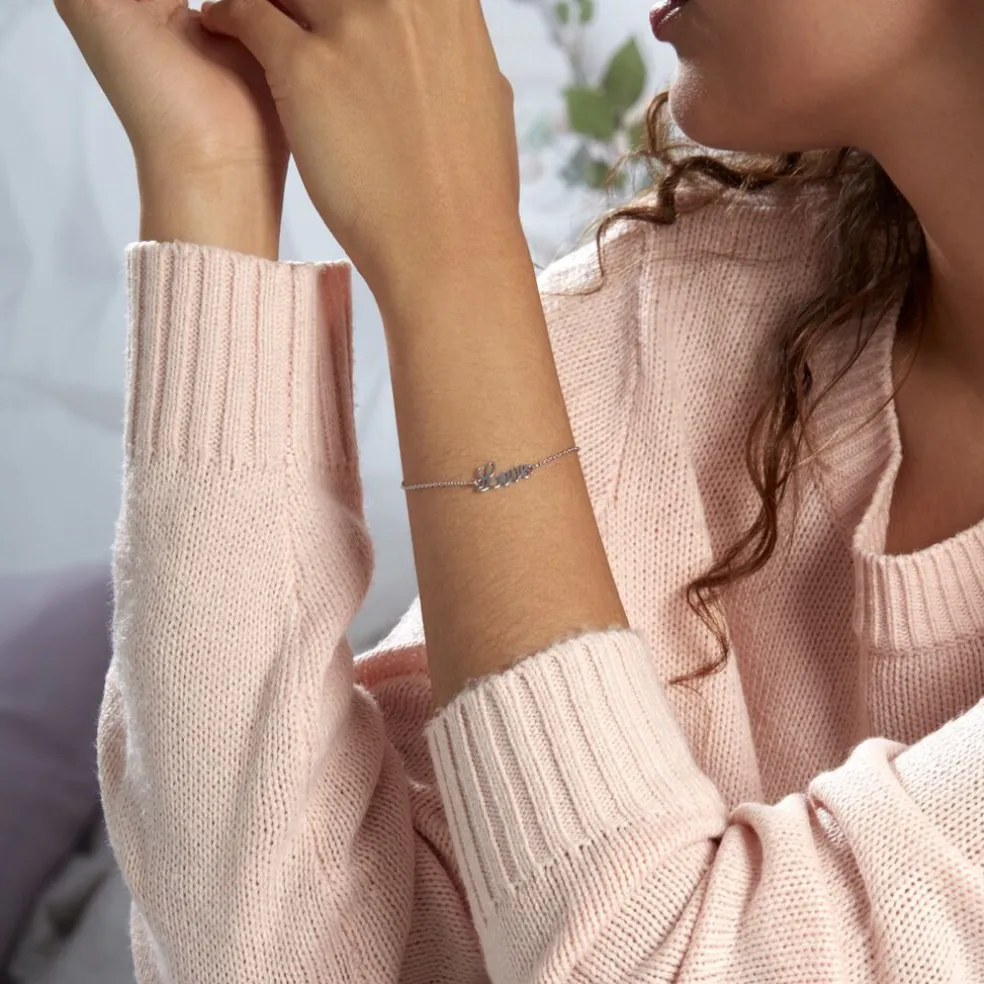 Bracelet Argent Blanc 925/1000 Message Love Maille Forcat 18cm