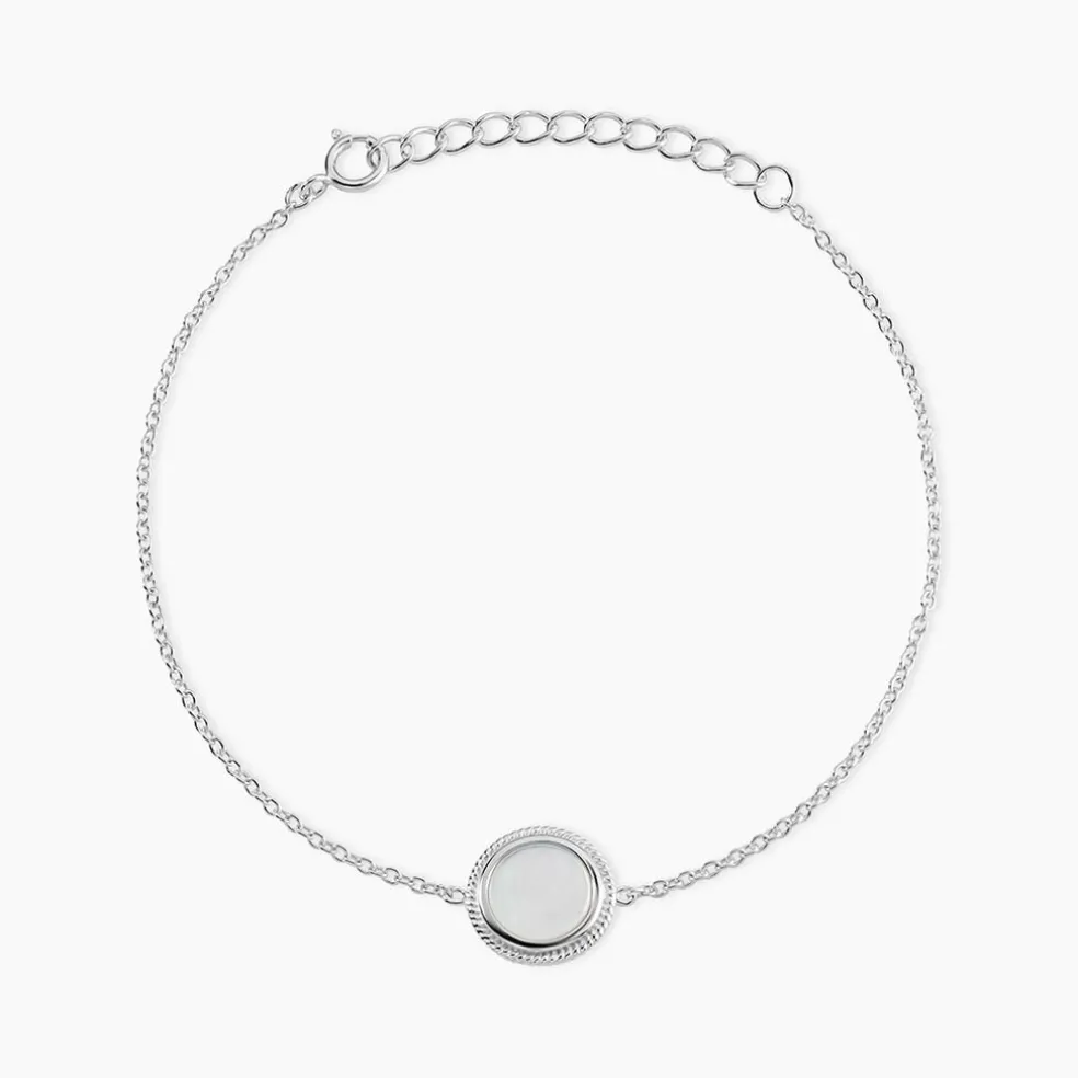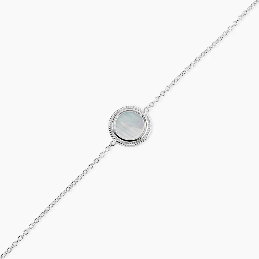 Bracelet Argent Blanc 925/1000 Pastille Nacre Blanche Maille Forcat 16+3cm
