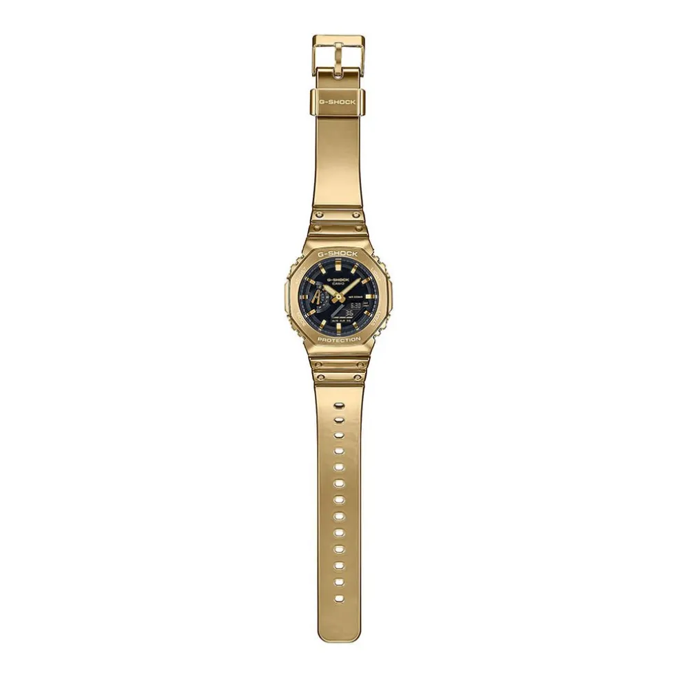 CASIO G-SHOCK Herren Quarzuhr GM-2100YMG-9AER | Gehäusefarbe: Gelb | Gehäusematerial: Edelstahl | Verstellsystem Armband: Dornschließe | Armbandtyp: Spange | Farbe des Zifferblatts: Schwarz | Anzeige: Analog Digital | Glasmaterial: Mineral | Wasserdichtigkeit: 200 m (20atm) | Kollektion: GM-2100YMG-9AER | Mechanismus: Quarz