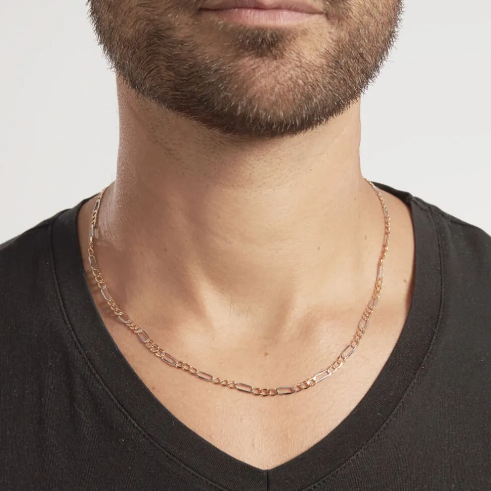 Collier Or Bicolore 375/1000 Maille Alternée 1/3 Largeur 3.75mm 70cm
