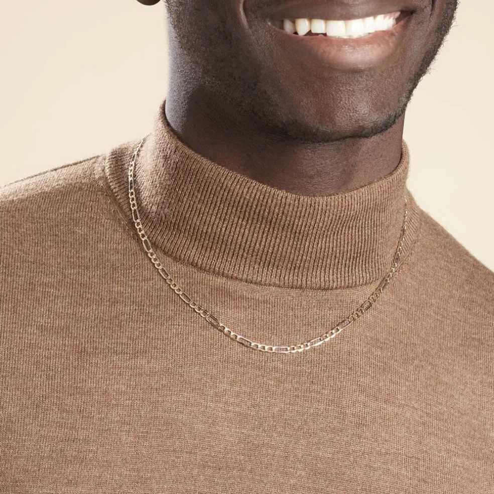 Collier Or Bicolore 375/1000 Maille Alternée 1/3 Largeur 3.75mm 50cm