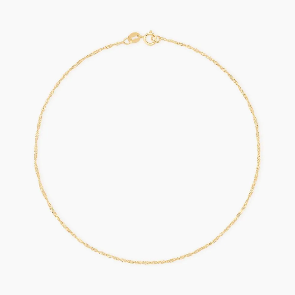 Chaine De Cheville Or Jaune 375/1000 Maille Singapour 1mm 24cm