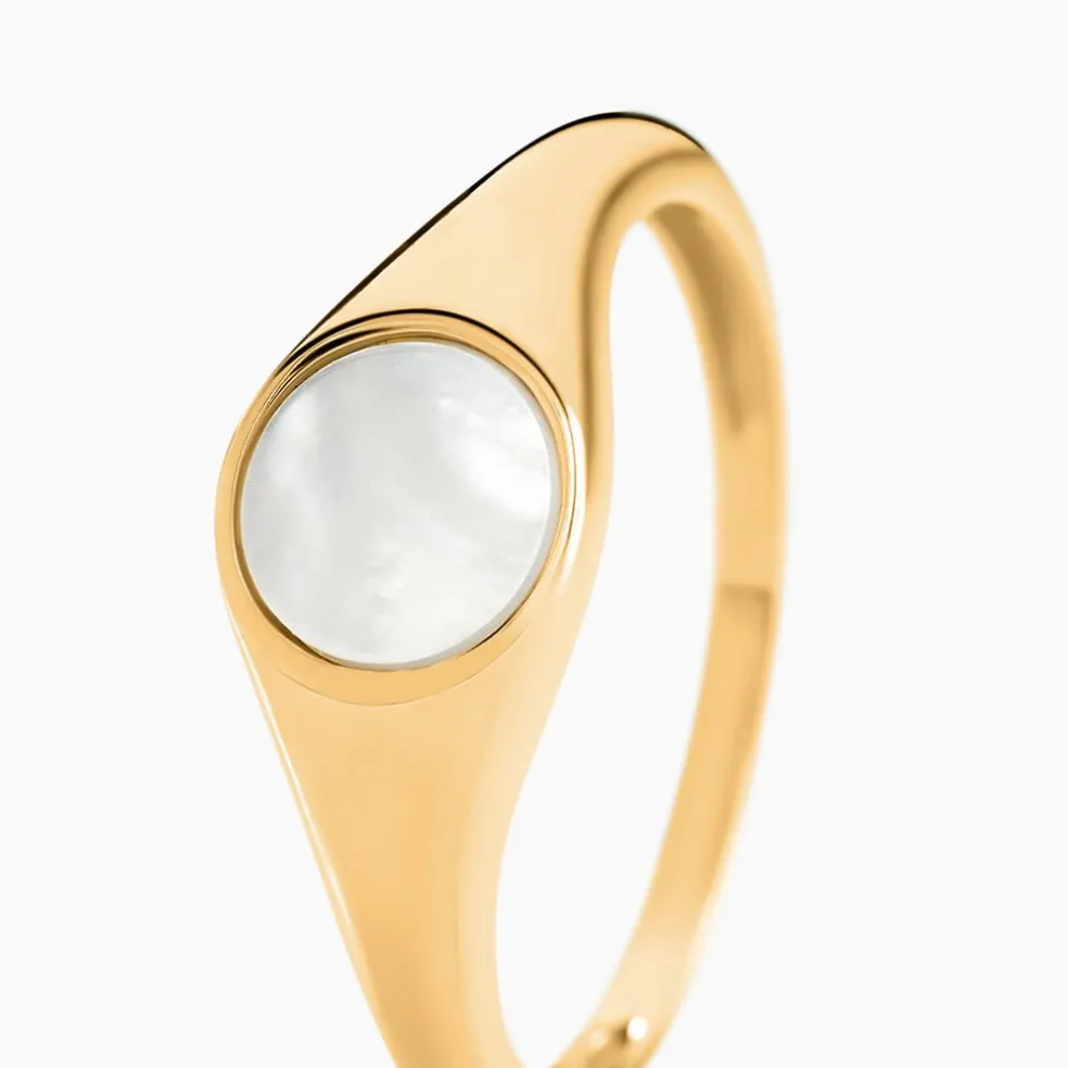 Chevalière Or Jaune 375/1000 Plateau Rond Nacre