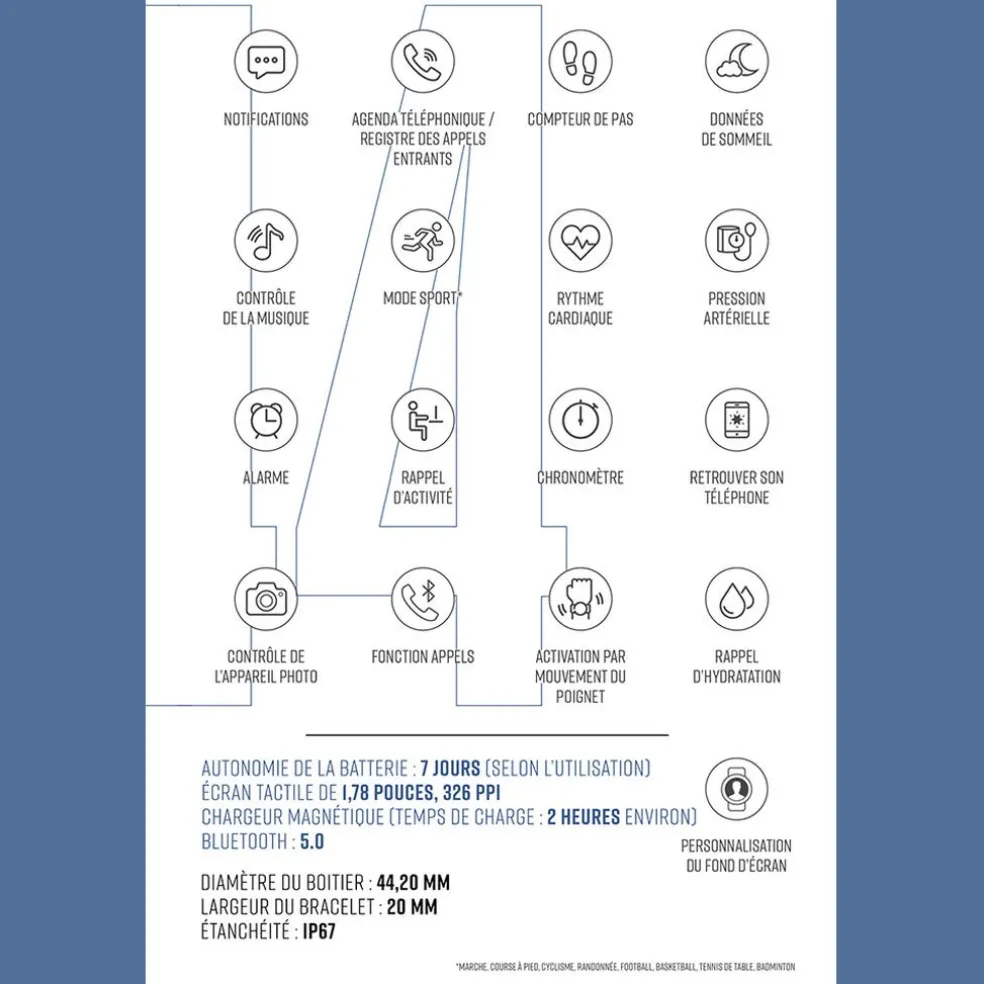 - Taille ajustable du bracelet Oui