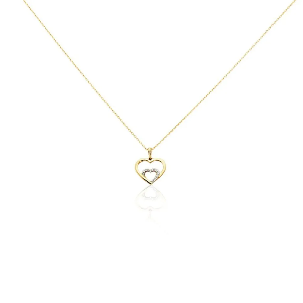 Collier Or Jaune 375/1000 Forme C艙ur Diamants 40+2cm