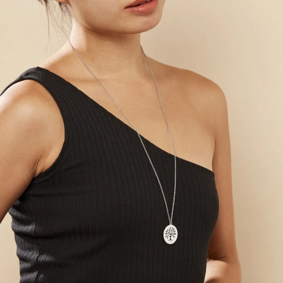 Collier Acier Blanc Pendentif Arbre De Vie Maille Forçat 70cm
