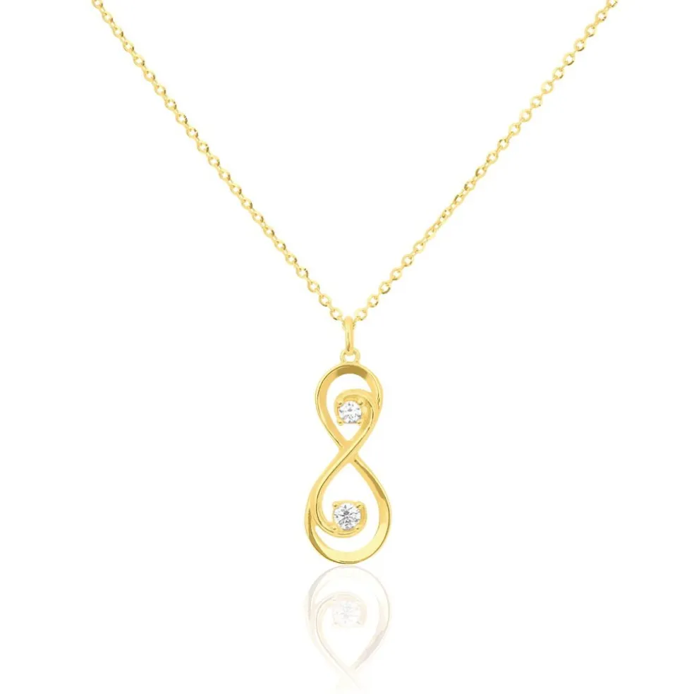 Collier Or Jaune 375/1000 Forme Infini Deux Oxydes Blancs 42cm
